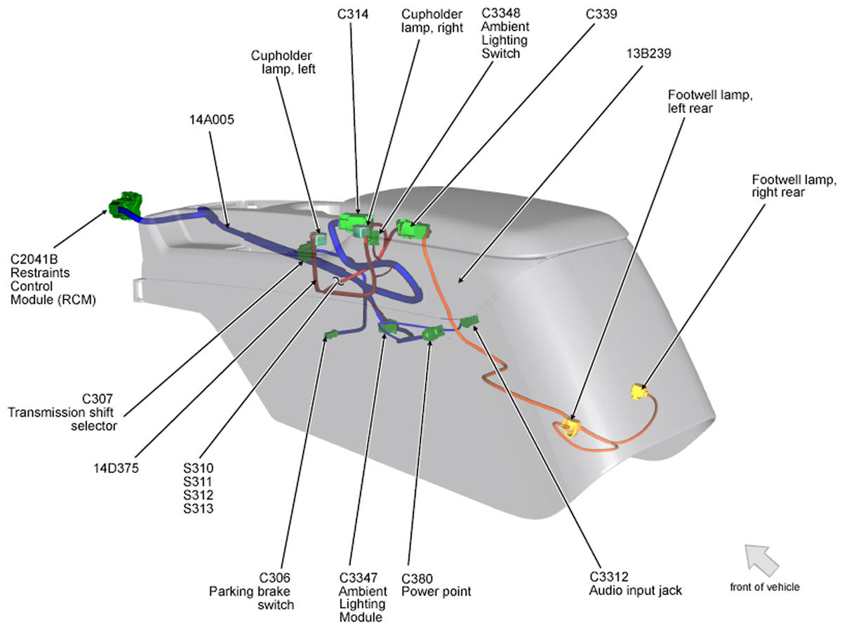 | Ambient Lighting Module | Under center console. See Figure. |