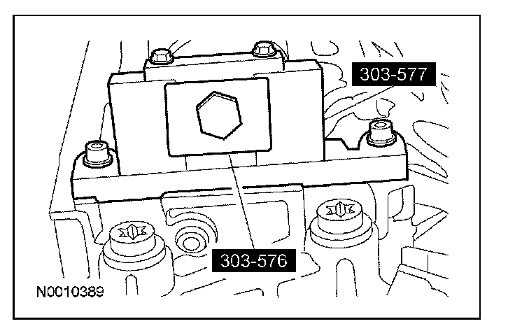 NOTE: The special tool must be installed on the damper and should contact the engine block, this positions the engine at TDC.