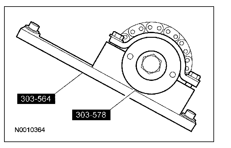 Position the camshaft timing slots below the centerline of the camshaft to correctly fit the special tools, and install the special tools on the rear of the LH cylinder head.