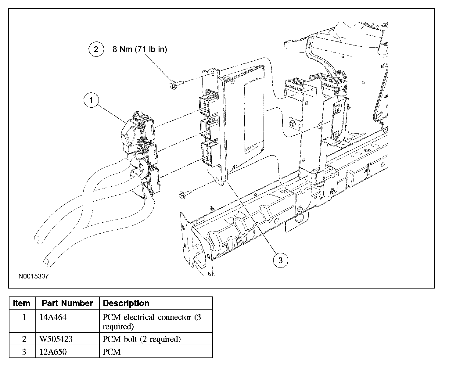 1. Install the PCM and the 2 bolts.