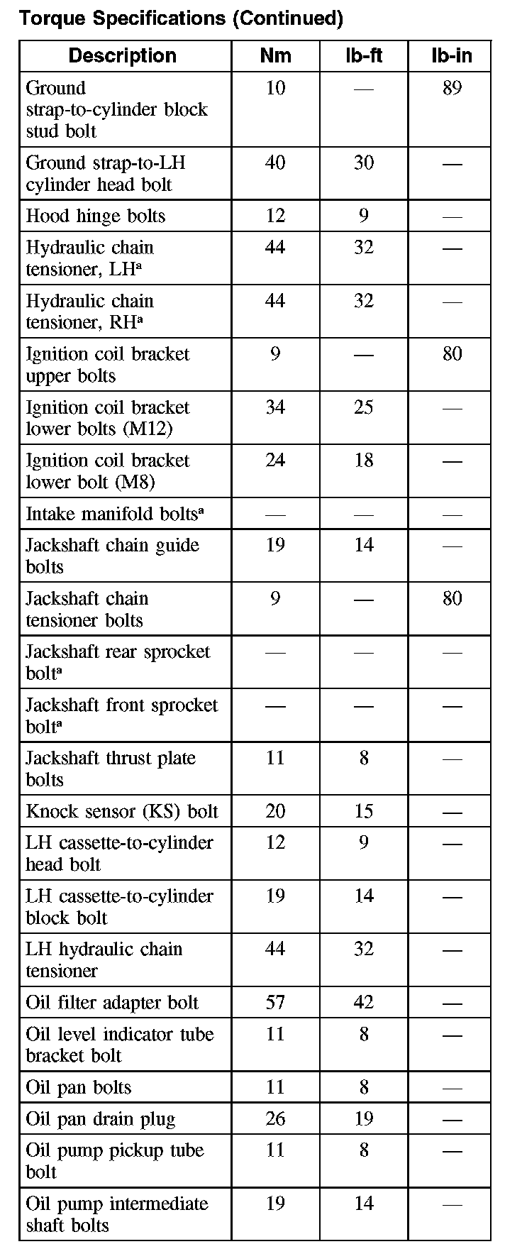 Torque Specifications