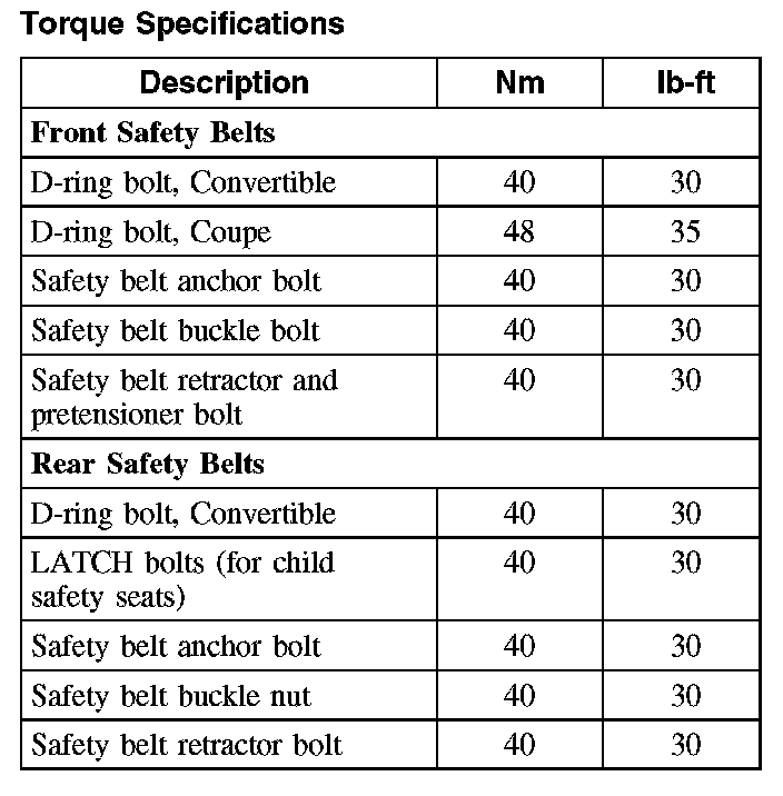 Torque Specifications: