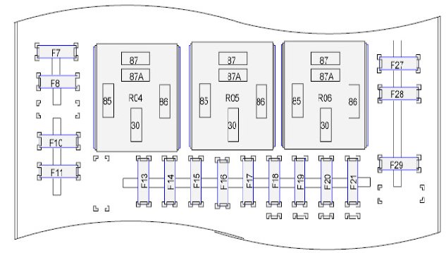 Fuse/Locations and Relay/Locations contains a view of the fuse/relay box, in which all fuses and relays are identified. Fuse and Relay Numbering and Naming. Fuse and relay numbering and naming follow the indication of the fuse panel cover. In addition, for all removable relays, pin positions are added to illustrate proper orientation.
