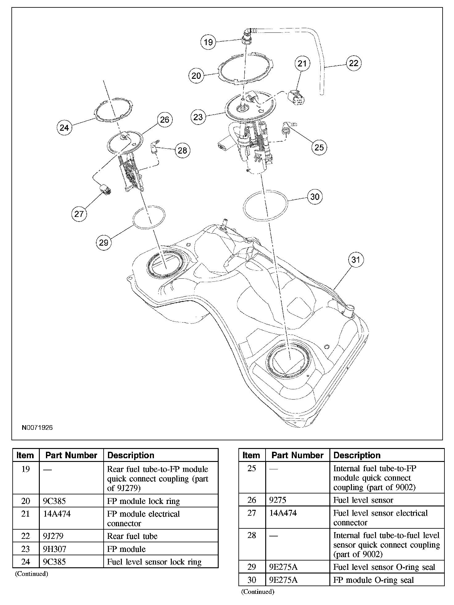 9. CAUTION: The fuel pump (FP) module must be handled carefully to avoid damage to the float arm.