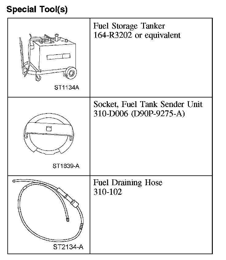 - Attach the fuel storage tanker to the special tool and remove as much fuel as possible from the fuel tank and filler pipe, lowering the fuel level below the fuel pump (FP) module mounting flange.