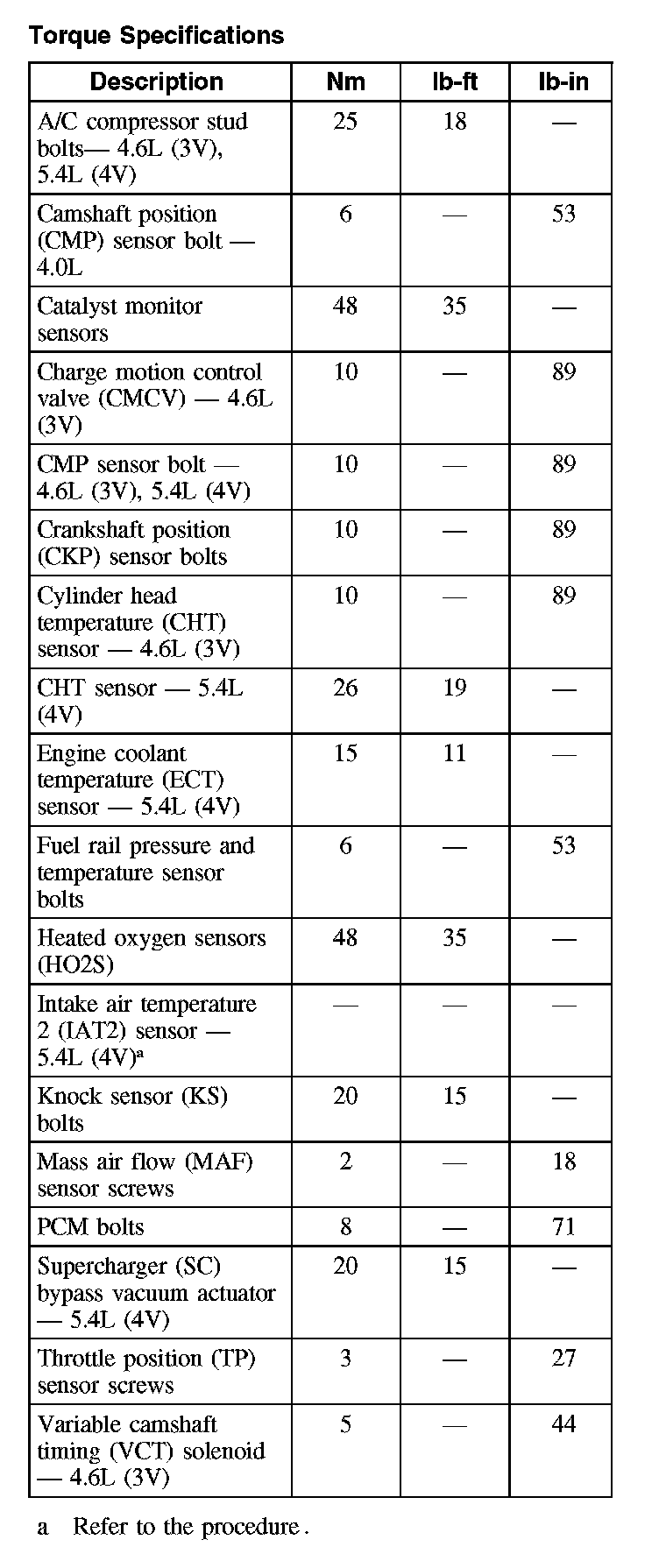 Torque Specifications: