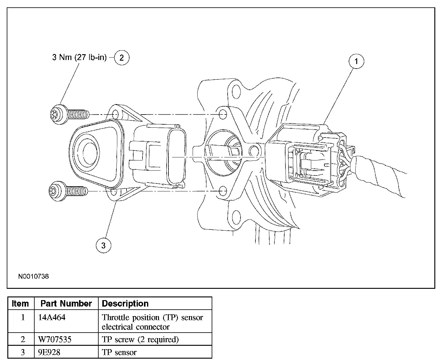 - Tighten to 3 Nm (27 lb-in).