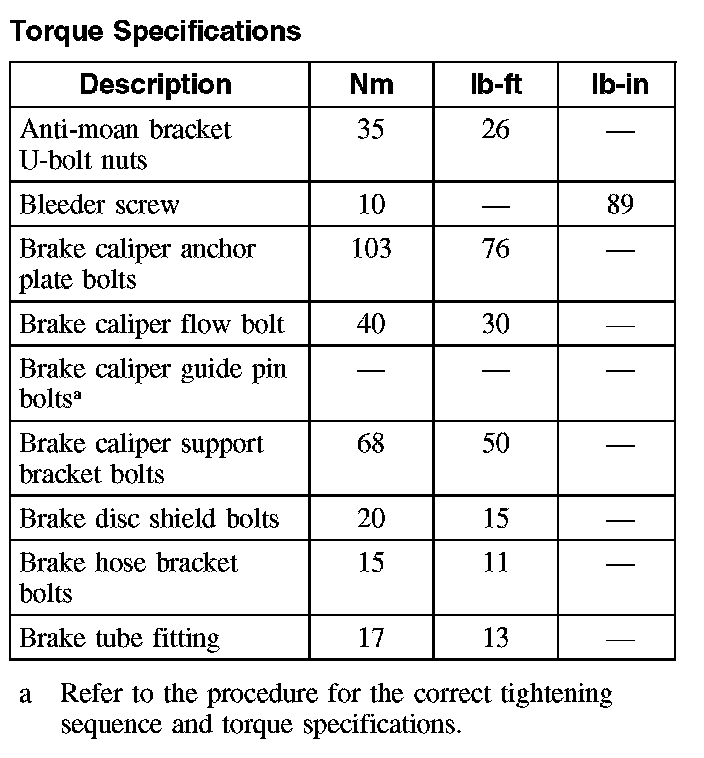 Torque Specifications, Rear
