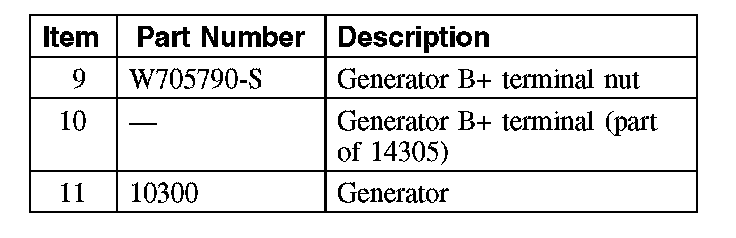 10. Position the generator B+ protective boot aside, remove the nut and position the generator B+ terminal aside.