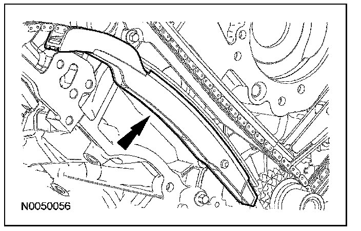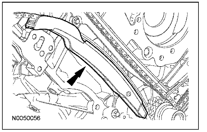 8. Install the LH primary timing chain guide and the 2 bolts.