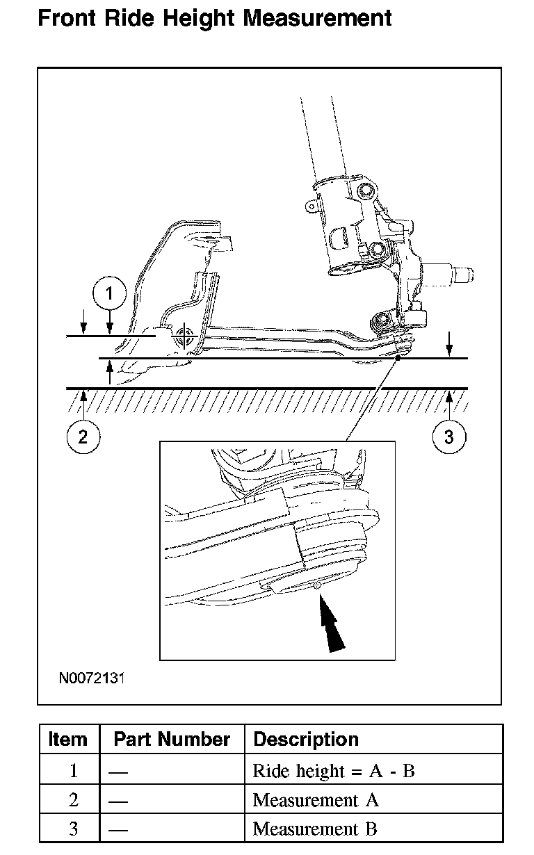 Home >> Ford >> 2008 >> Mustang V8-5.4L SC >> Repair and Diagnosis >> Maintenance >> Alignment >> Service and Repair >> Ride Height Measurement