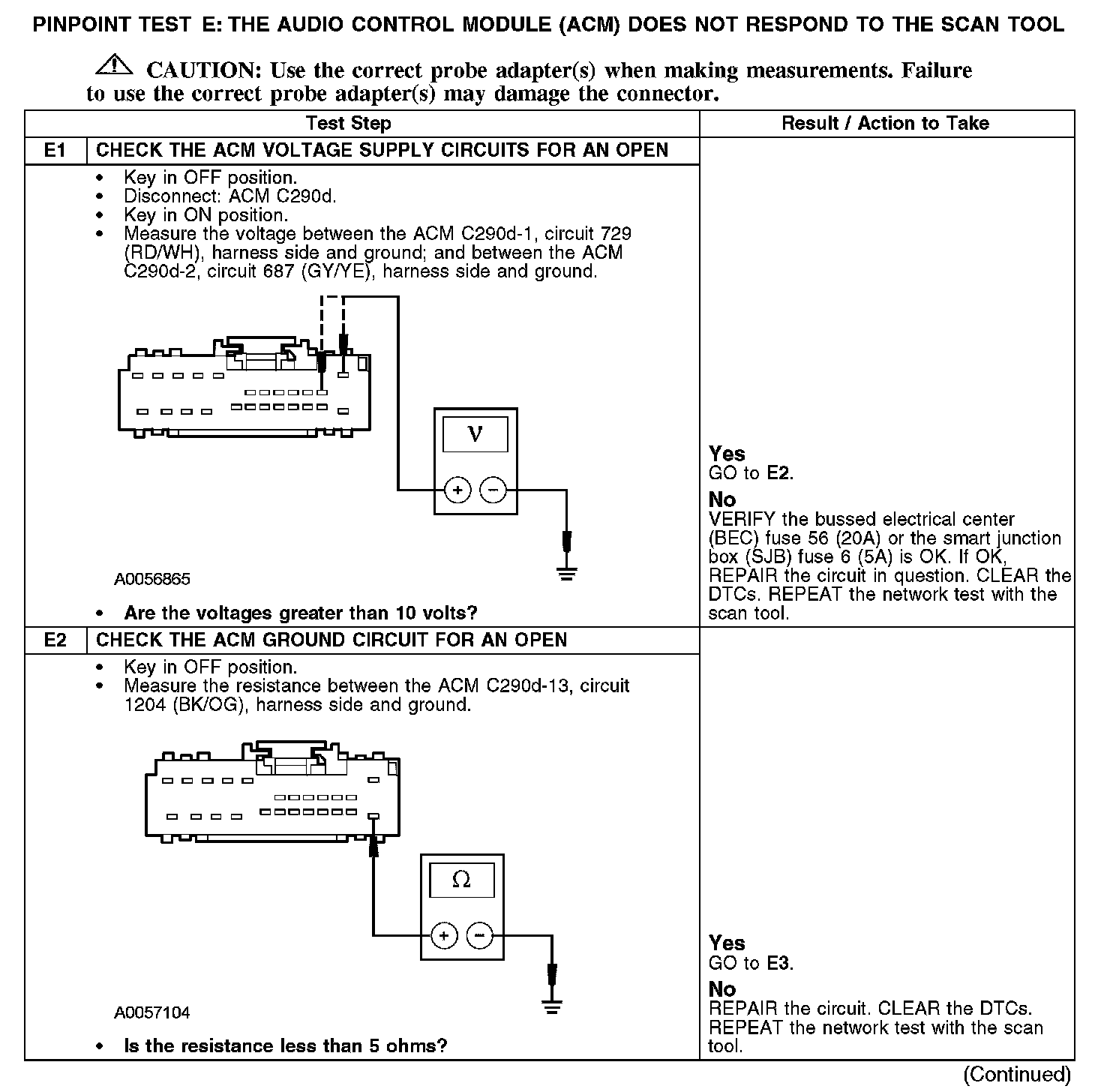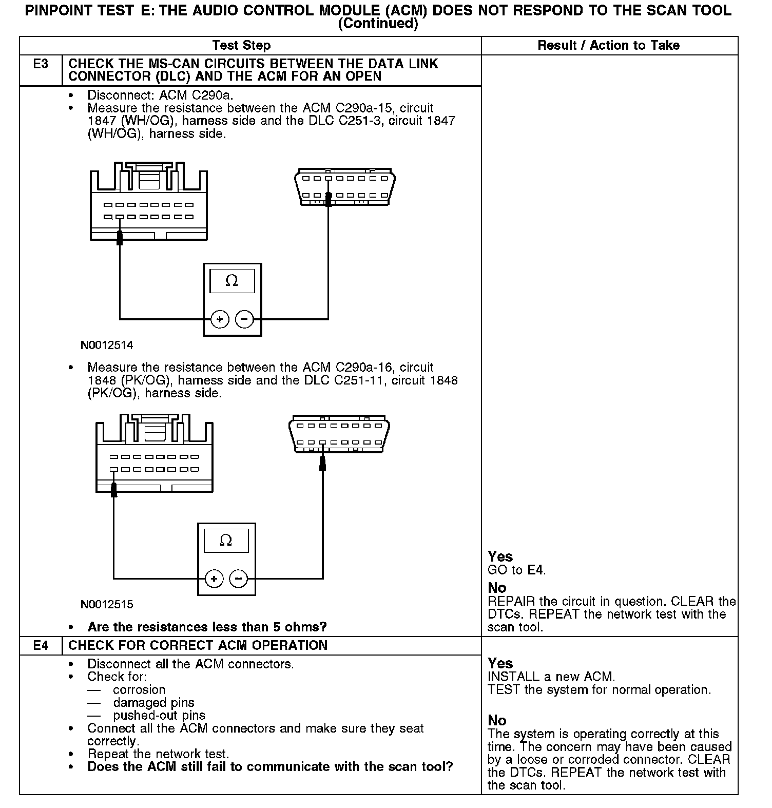 Test E: The Audio Control Module (ACM) Does Not Respond To The Scan Tool