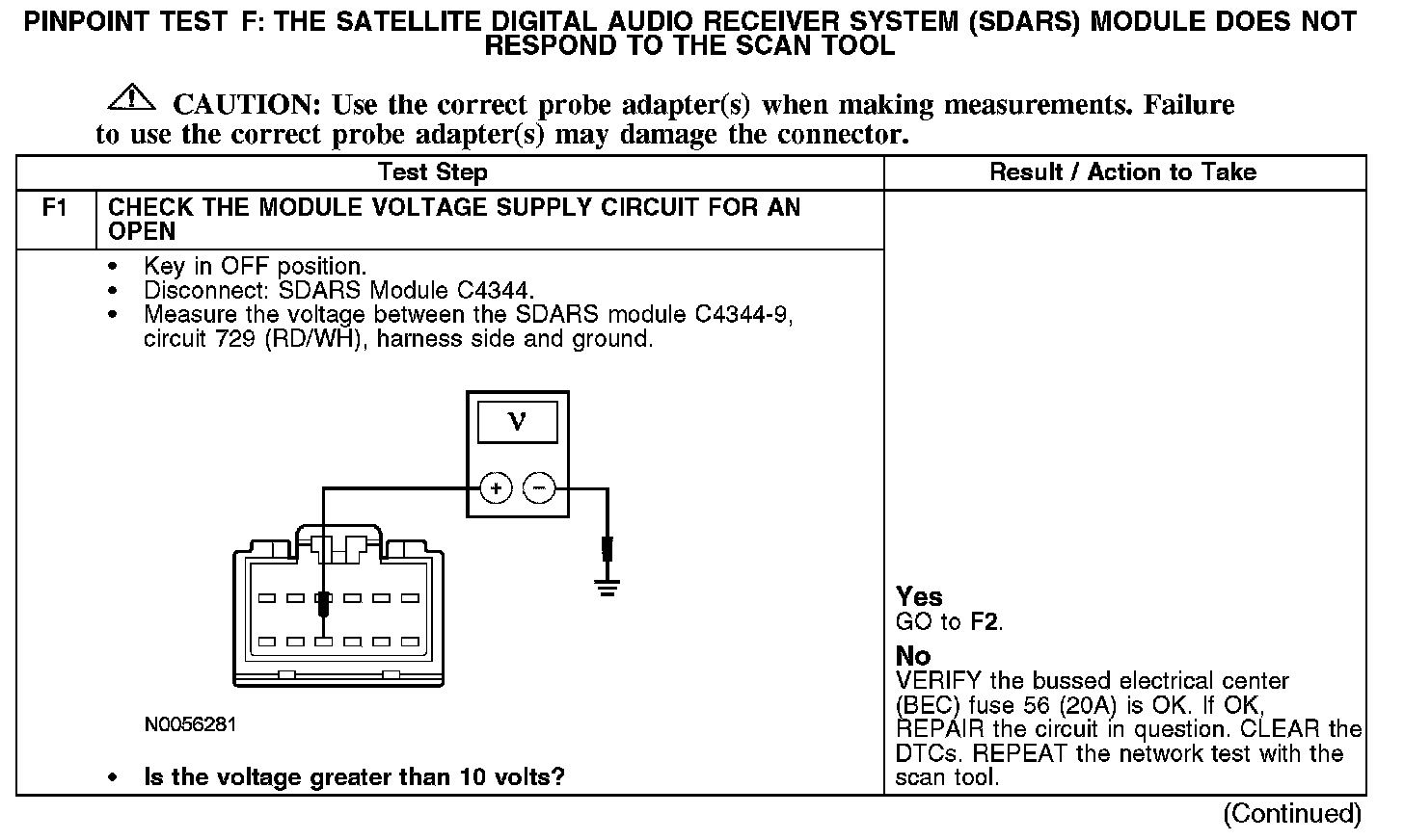 PINPOINT TEST F: THE SATELLITE DIGITAL AUDIO RECEIVER SYSTEM (SDARS) MODULE DOES NOT RESPOND TO THE SCAN TOOLNormal Operation