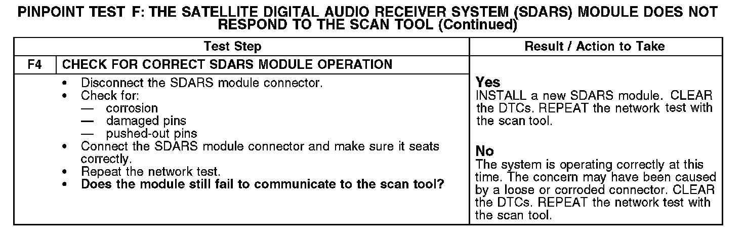 Test F: The Satellite Digital Audio Receiver System (SDARS) Module Does Not Respond To The Scan Tool