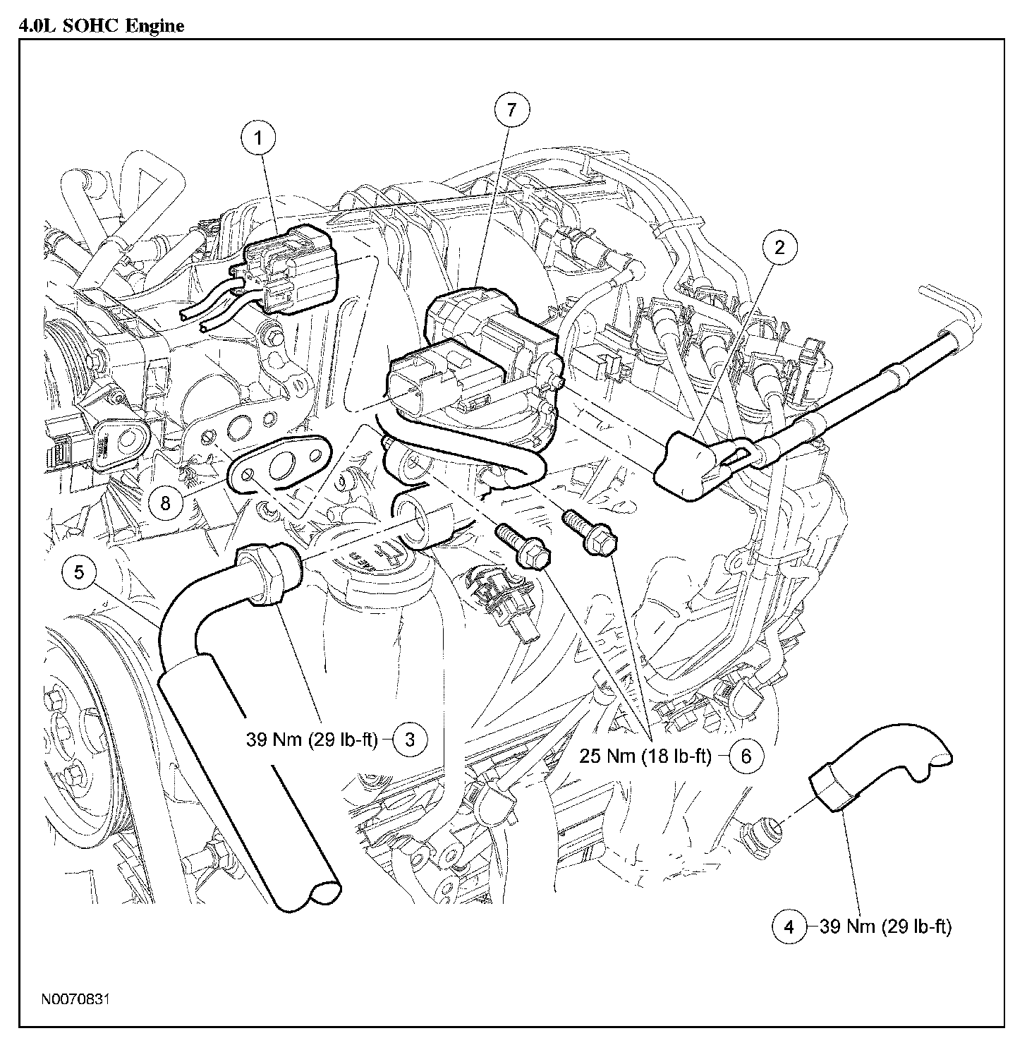 - To install, tighten to 39 Nm (29 lb-ft) (4.0L SOHC).
