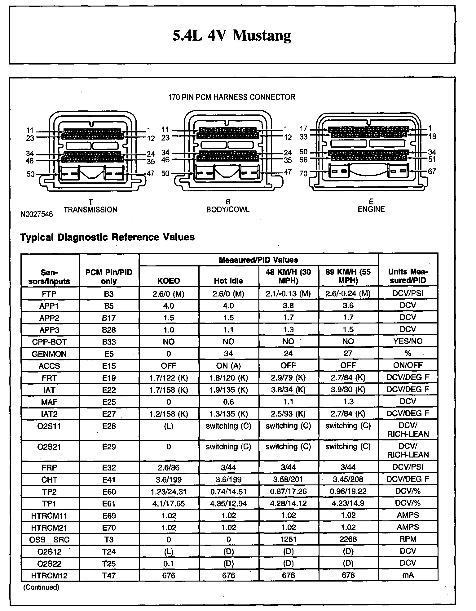TYPICAL DIAGNOSTIC REFERENCE VALUES5.4L 4V Mustang (Part 1):
