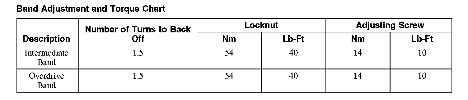 Band Adjustment and Torque Chart: