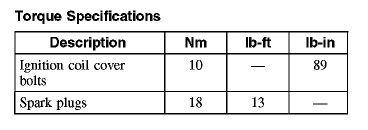 Torque Specifications:
