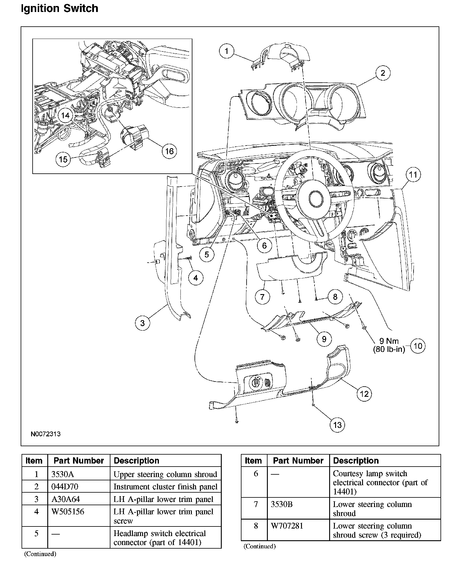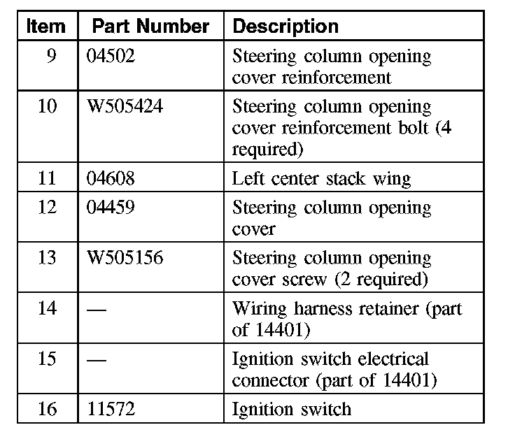 CAUTION: Do not remove the ignition lock cylinder and the ignition switch at the same time or damage to the column may result.