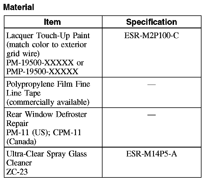- If the brown layer is not broken or missing, apply only the silver grid repair compound to the break. If both the brown and silver layers of the grid are broken or missing, apply a coating of the lacquer touch up paint across the break in the grid line prior to applying the rear window defroster repair compound. Do not overlap the silver grid line with the paint. Several applications may be necessary to achieve a color match.