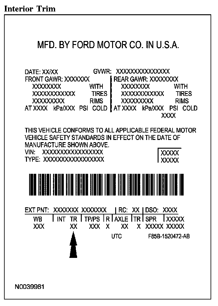 Interior trim codes are listed as a 2-part code. The first code listed identifies the trim level. The second code listed identifies the interior trim color.