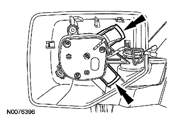 Position the exterior mirror glass to the full outboard position, so that the exterior mirror damper springs and the exterior mirror damper spring tracks are visible. To help locate the exterior mirror damper springs, refer to Exterior Mirrors - Exploded View.