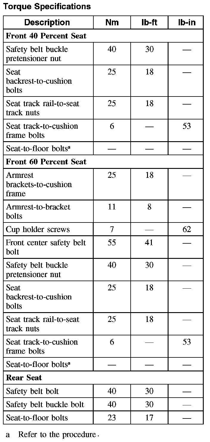 Seats: Specifications