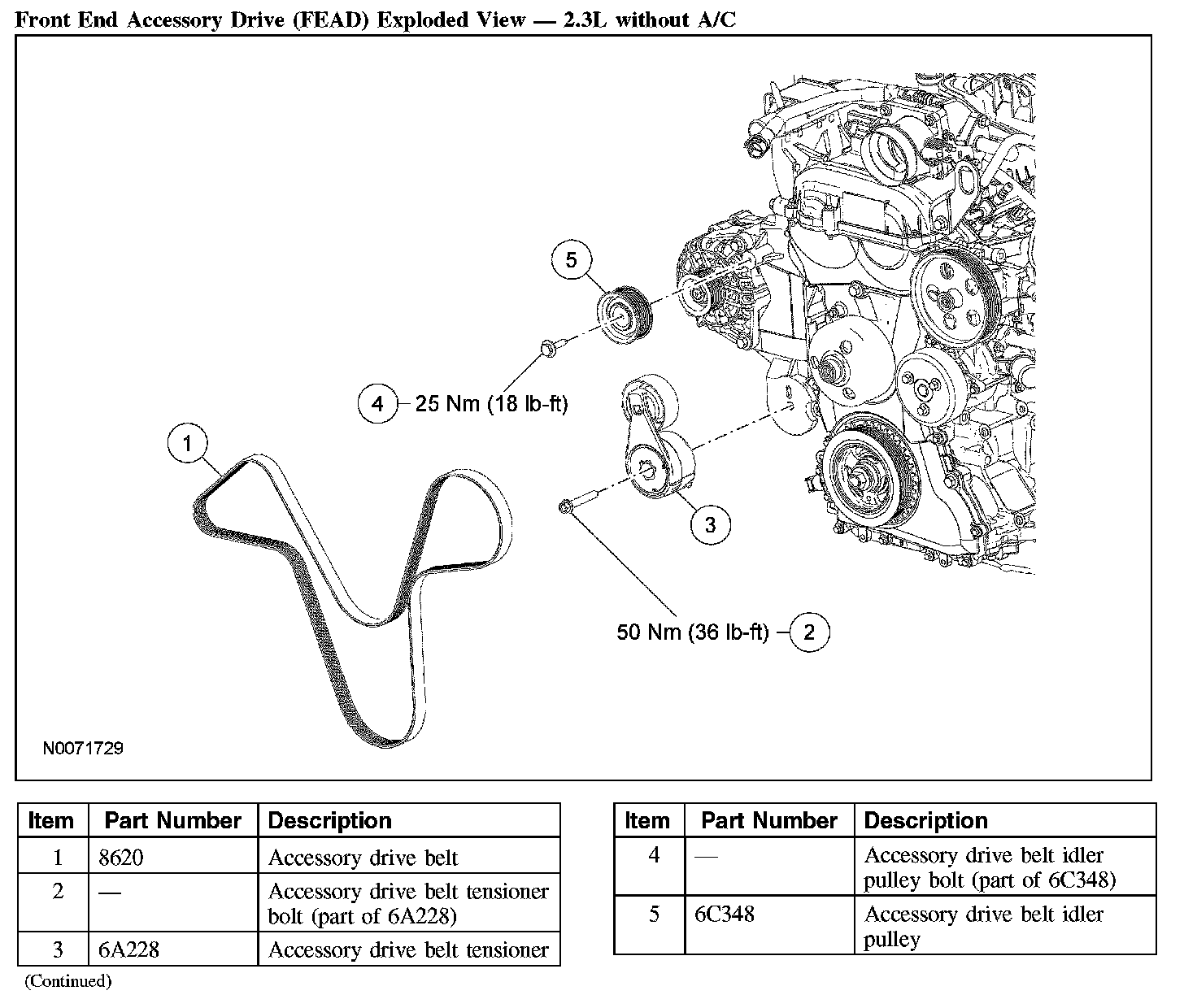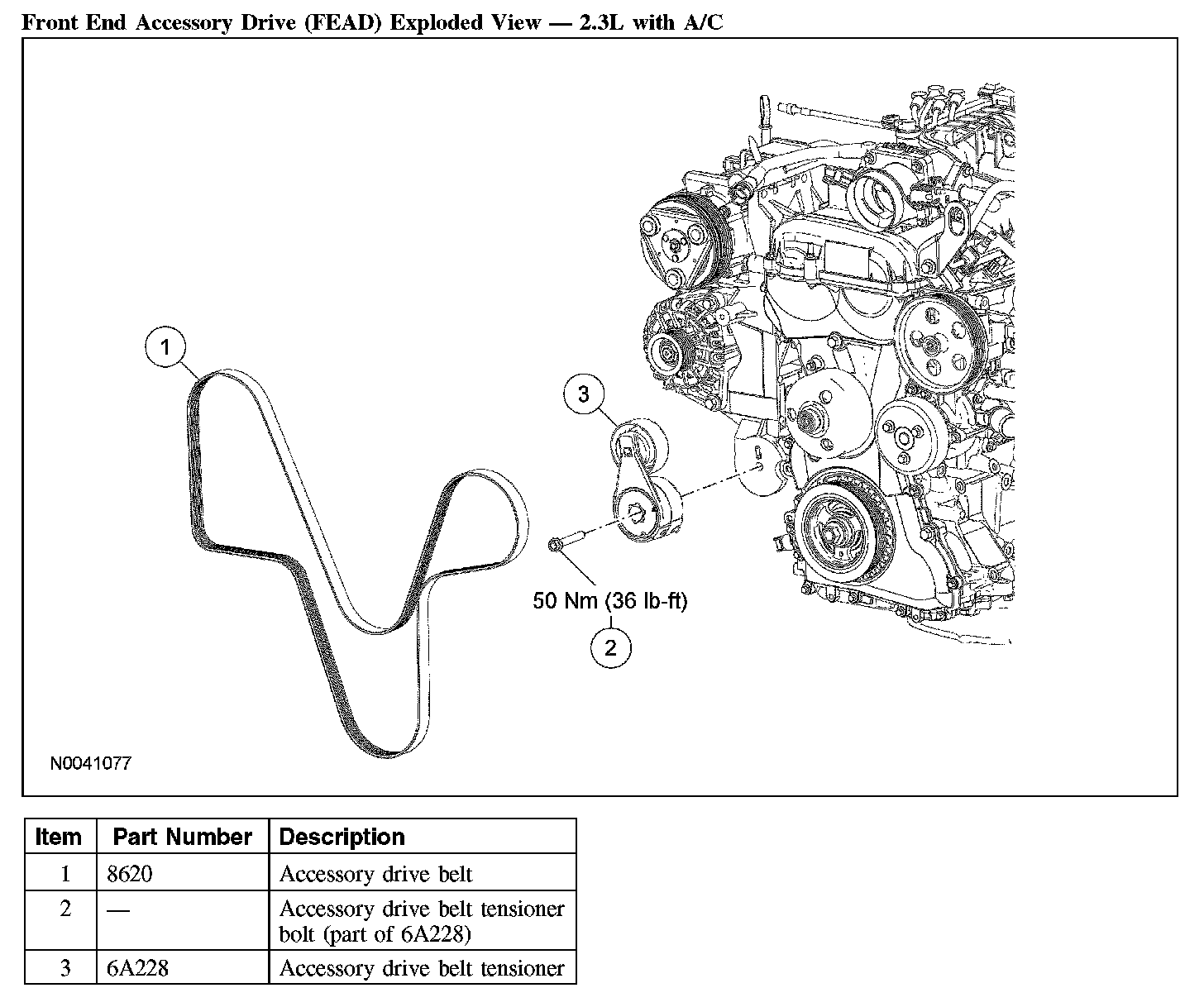 Front End Accessory Drive (FEAD) - Exploded ViewFront End Accessory Drive (FEAD) Exploded View - 2.3L with A/C