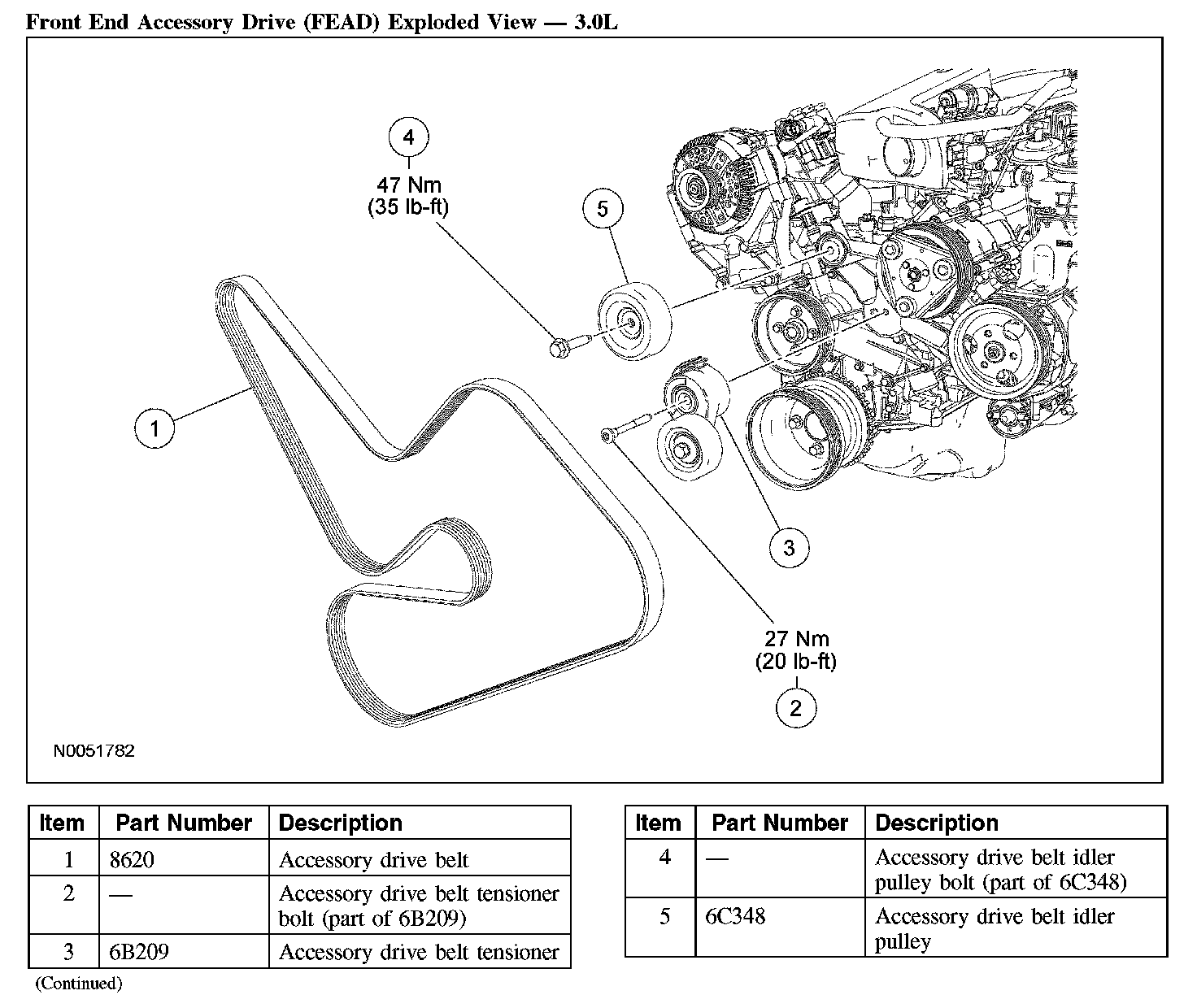 Front End Accessory Drive (FEAD) Exploded View - 3.0L