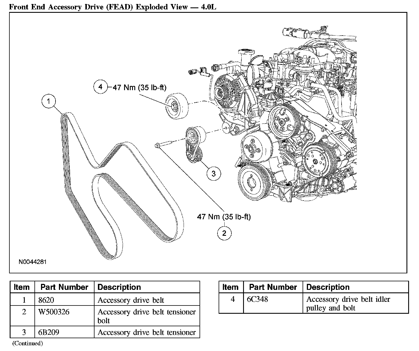 Front End Accessory Drive (FEAD) Exploded View - 4.0L
