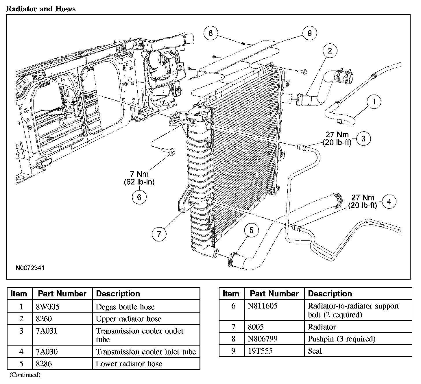 Radiator and Cooling Fan - Exploded View, 2.3L