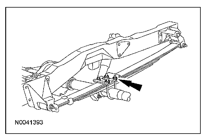 NOTE: On vehicles equipped with a spring spacer block, place the shim between the rear spring and the axle spacer.