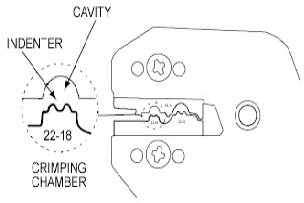 6. Center one end of the wire splice in the appropriate crimping chamber.