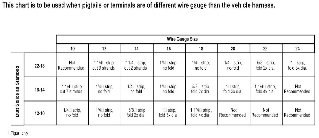 The given chart is to be used when pigtails or terminals are different wire gauge than the vehicle harness.