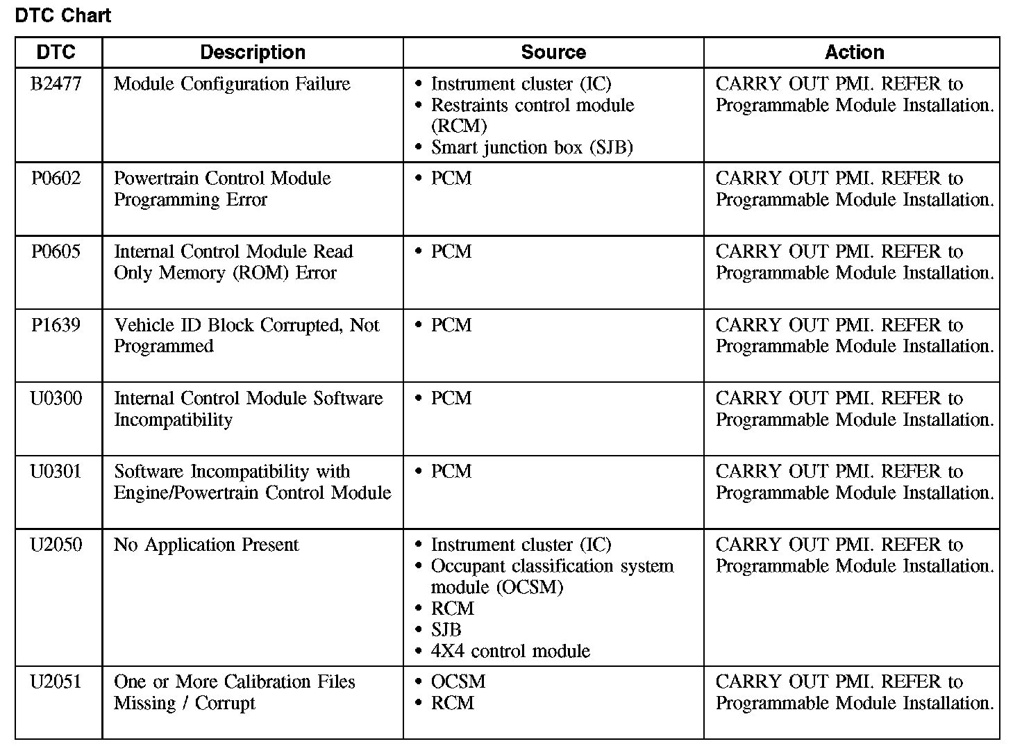 B2477 / P0602-P1639 / U0300-U2051:
