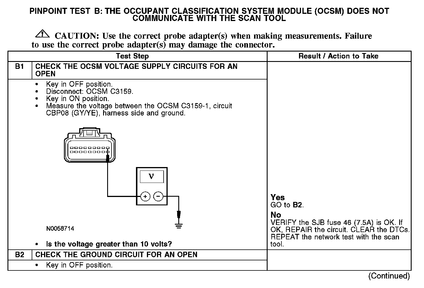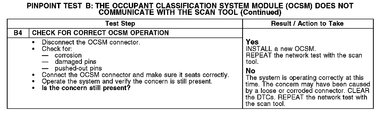 Test B: The Occupant Classification System Module (OCSM) Does Not Communicate With the Scan Tool