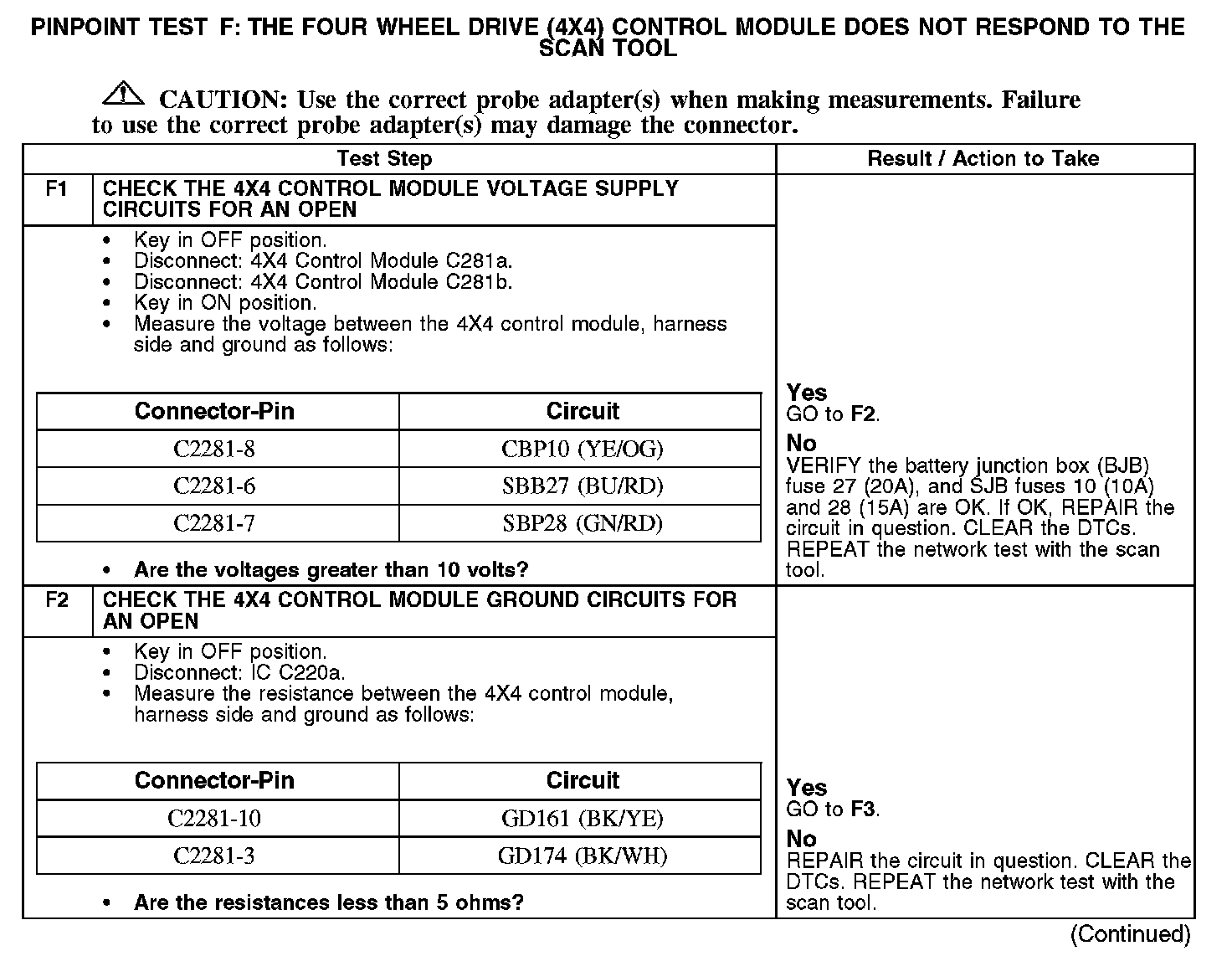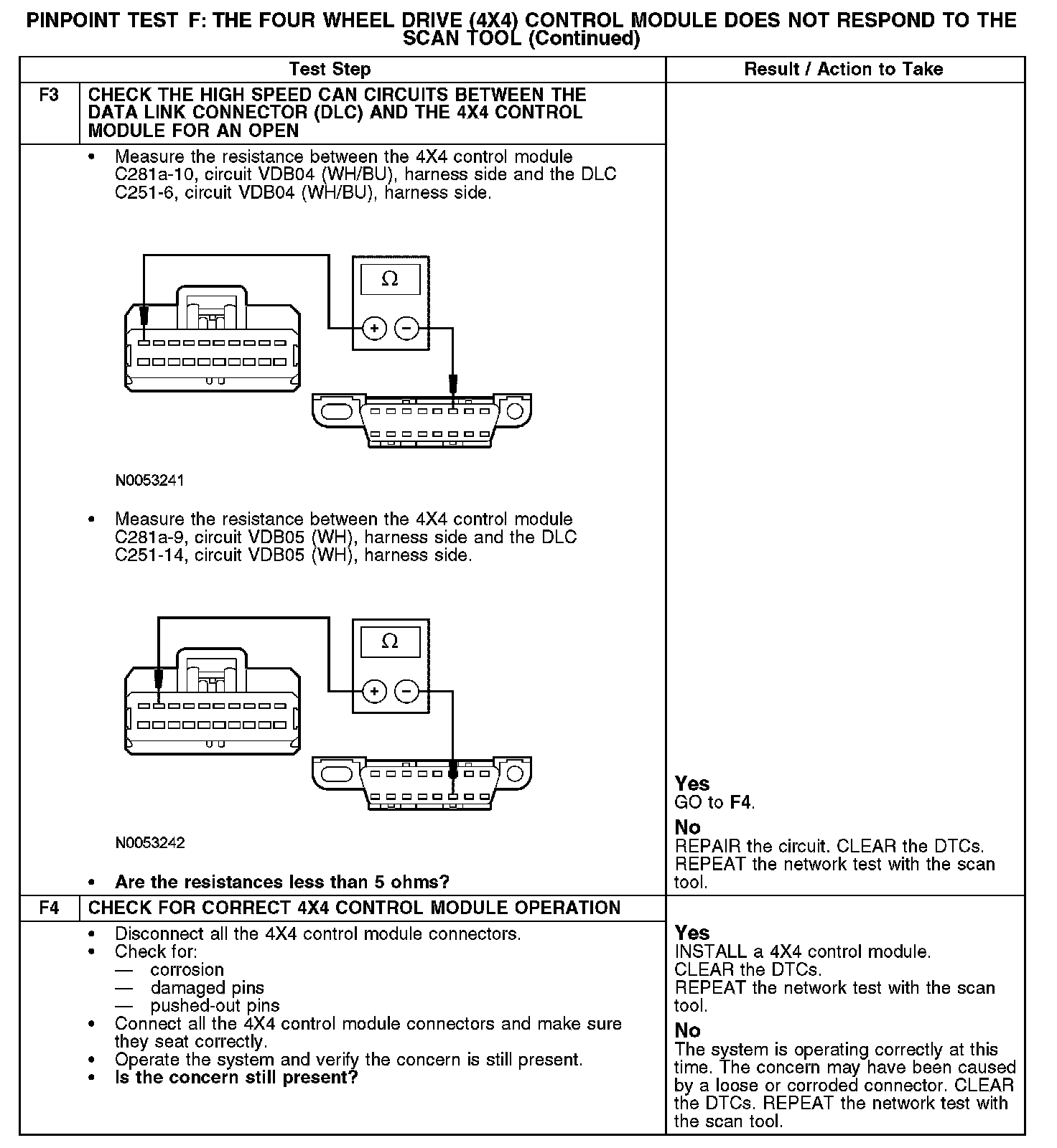 PINPOINT TEST F: THE FOUR WHEEL DRIVE (4X4) CONTROL MODULE DOES NOT RESPOND TO THE SCAN TOOLNormal Operation