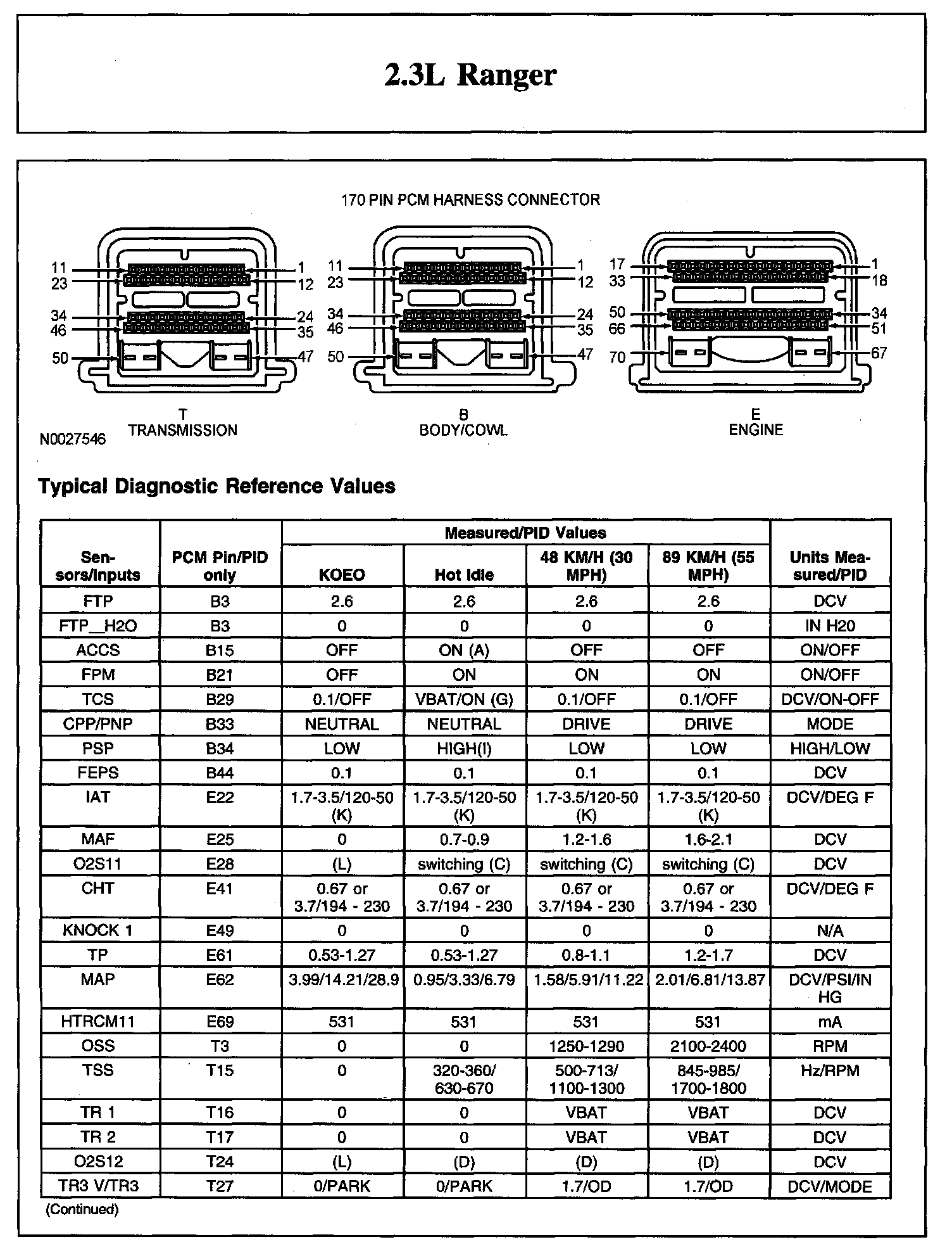 TYPICAL DIAGNOSTIC REFERENCE VALUES2.3L Ranger (Part 1):