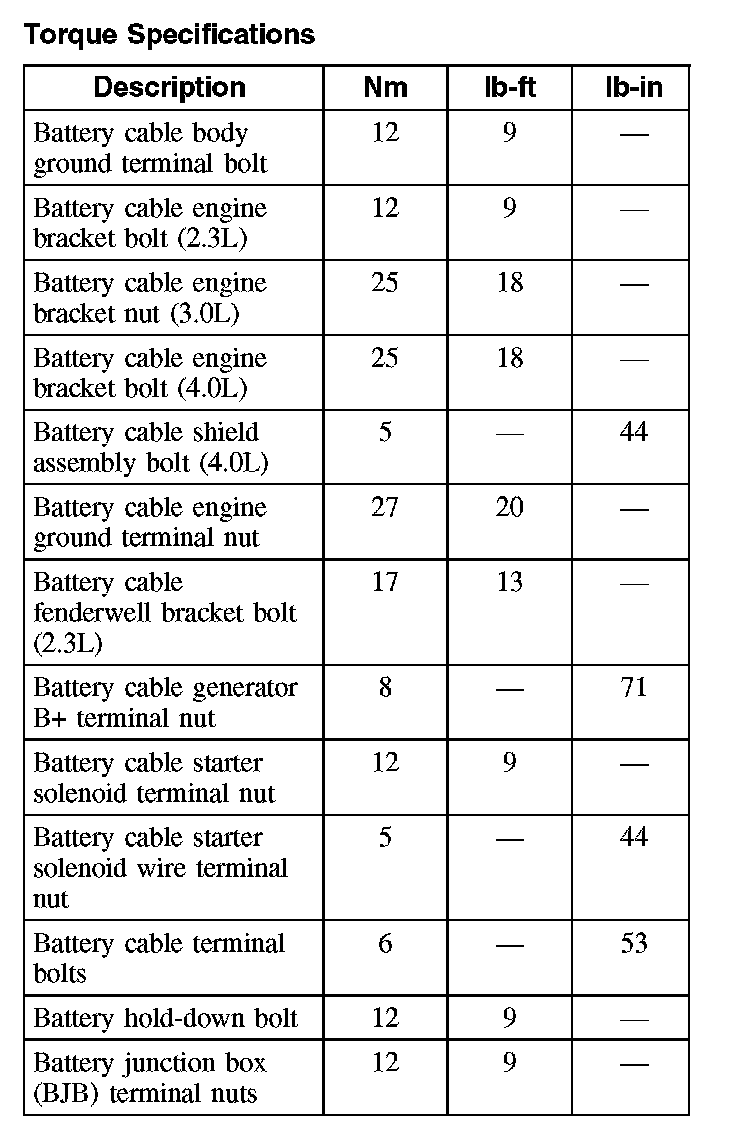 Torque Specifications: