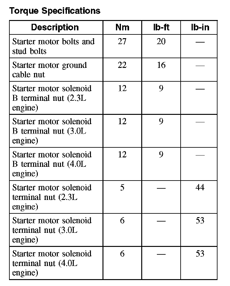 Torque Specifications: