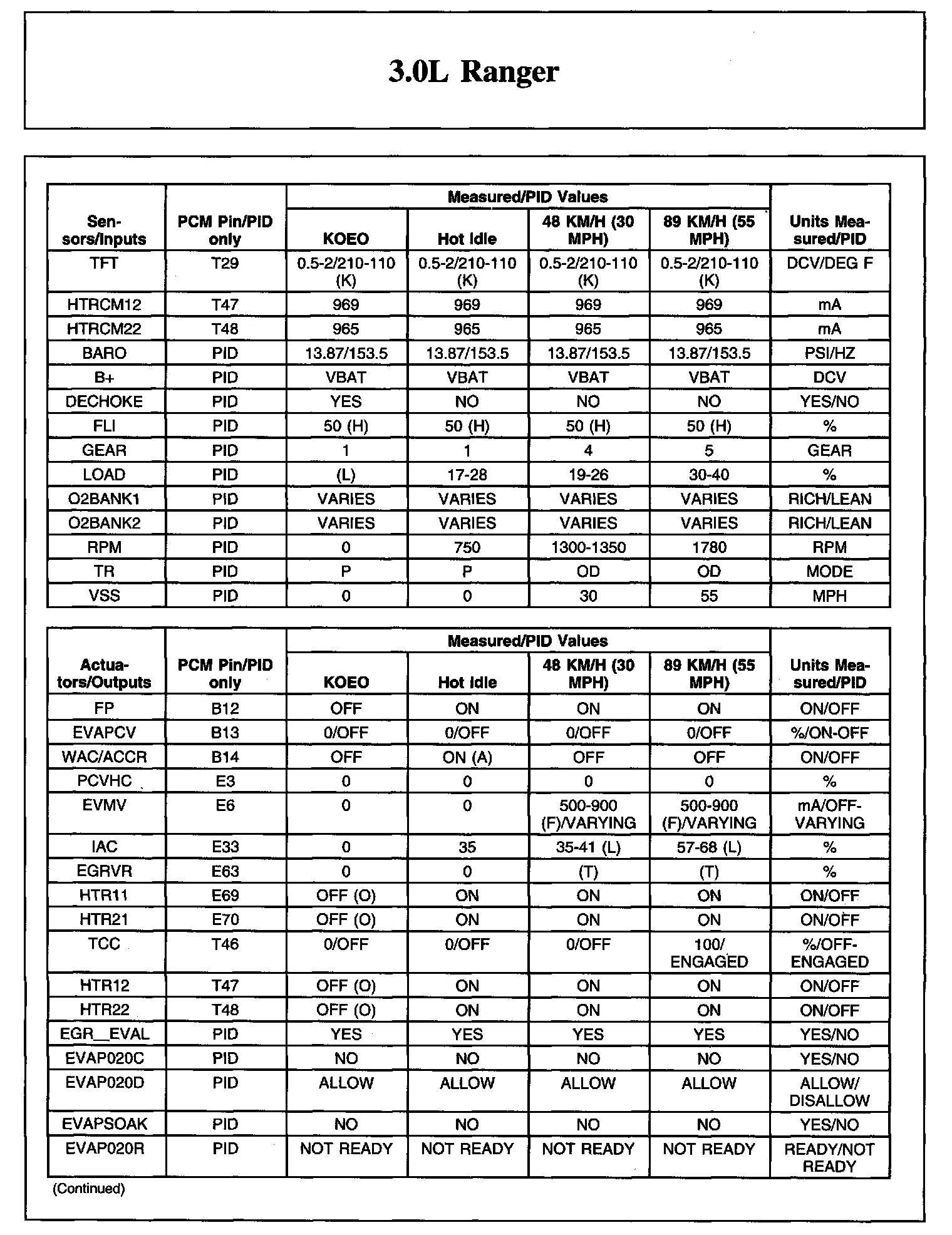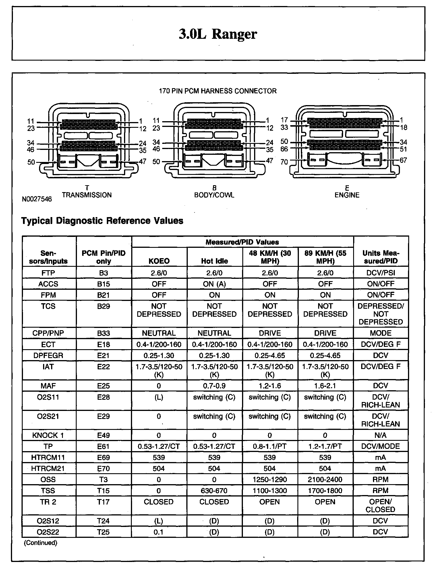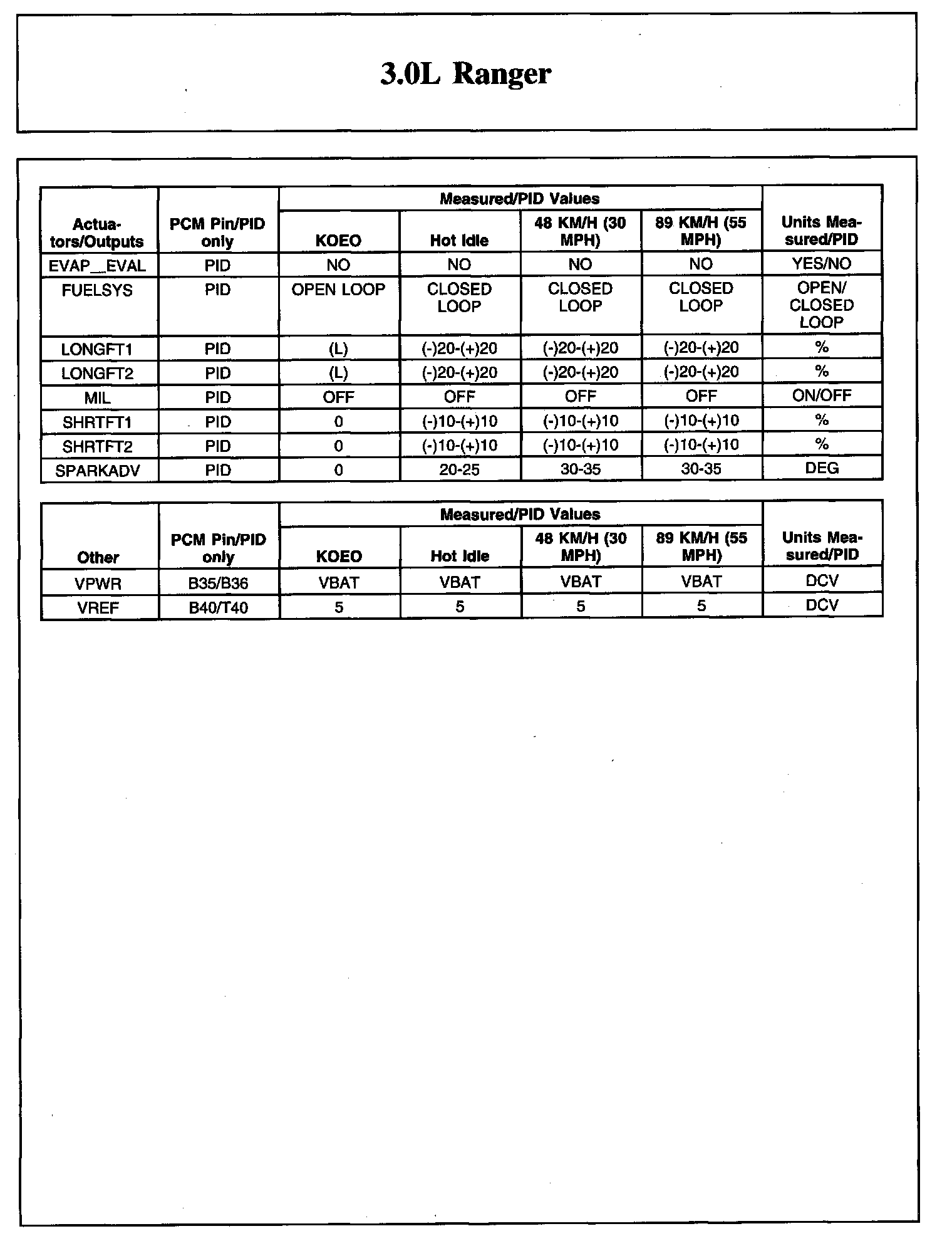 Home >> Ford >> 2008 >> Ranger 2WD V6-3.0L >> Repair and Diagnosis >> Powertrain Management >> Computers and Control Systems >> Testing and Inspection >> Scan Tool Testing and Procedures >> Typical Diagnostic Reference Values