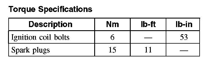 Torque Specifications: