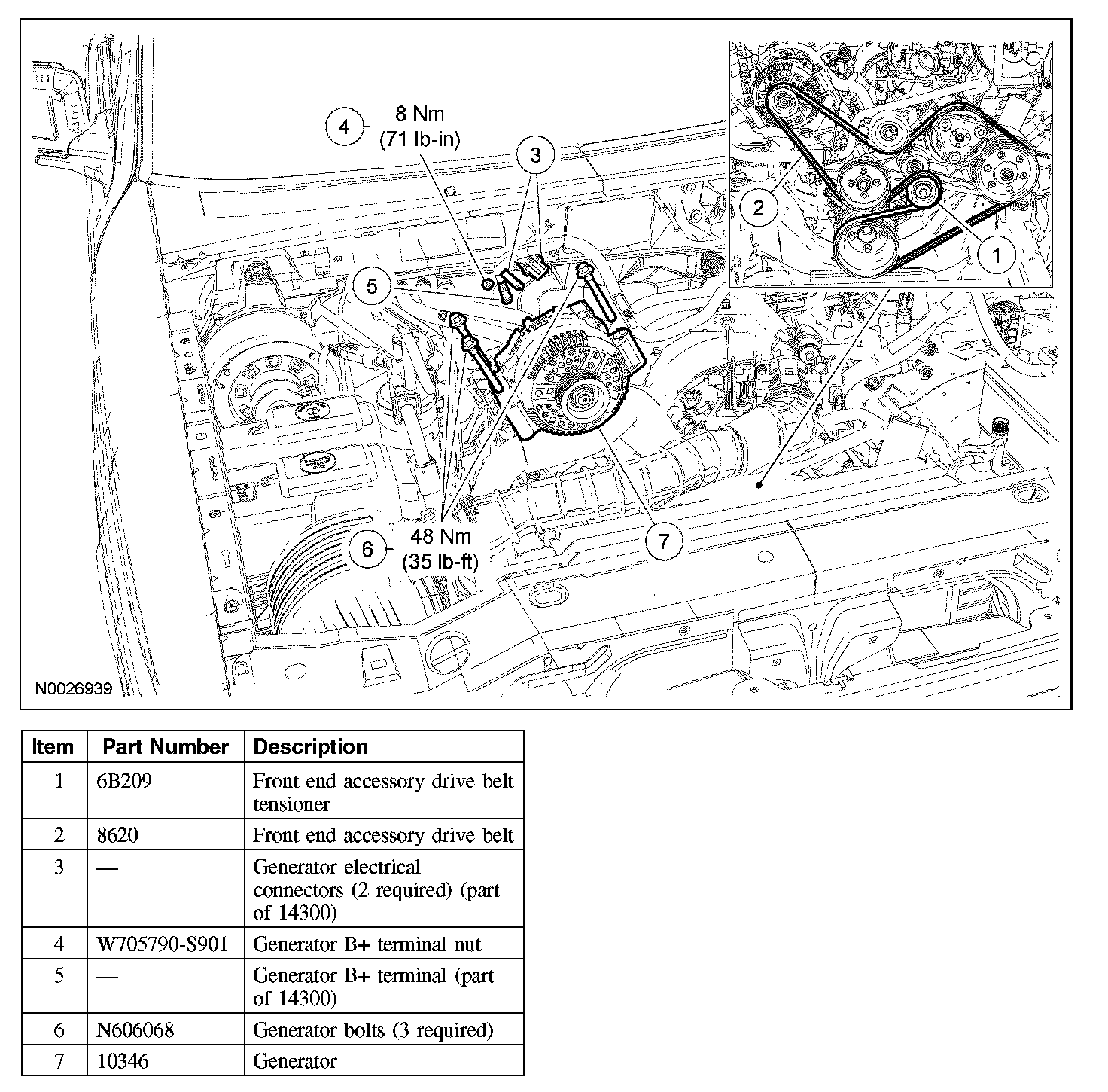4. Position the protective cover aside, remove the nut and position the generator B+ terminal aside.