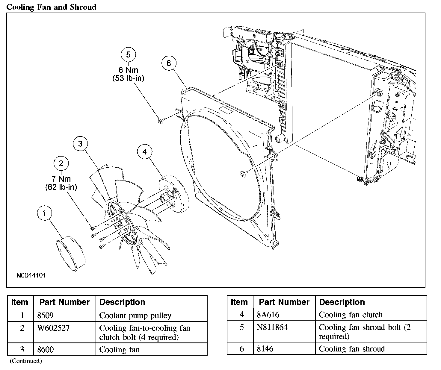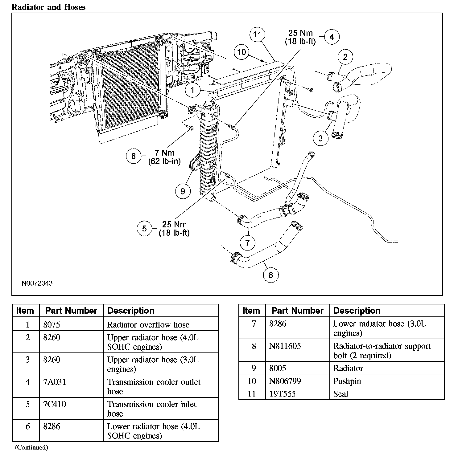 Radiator and Cooling Fan - Exploded View, 3.0L and 4.0L