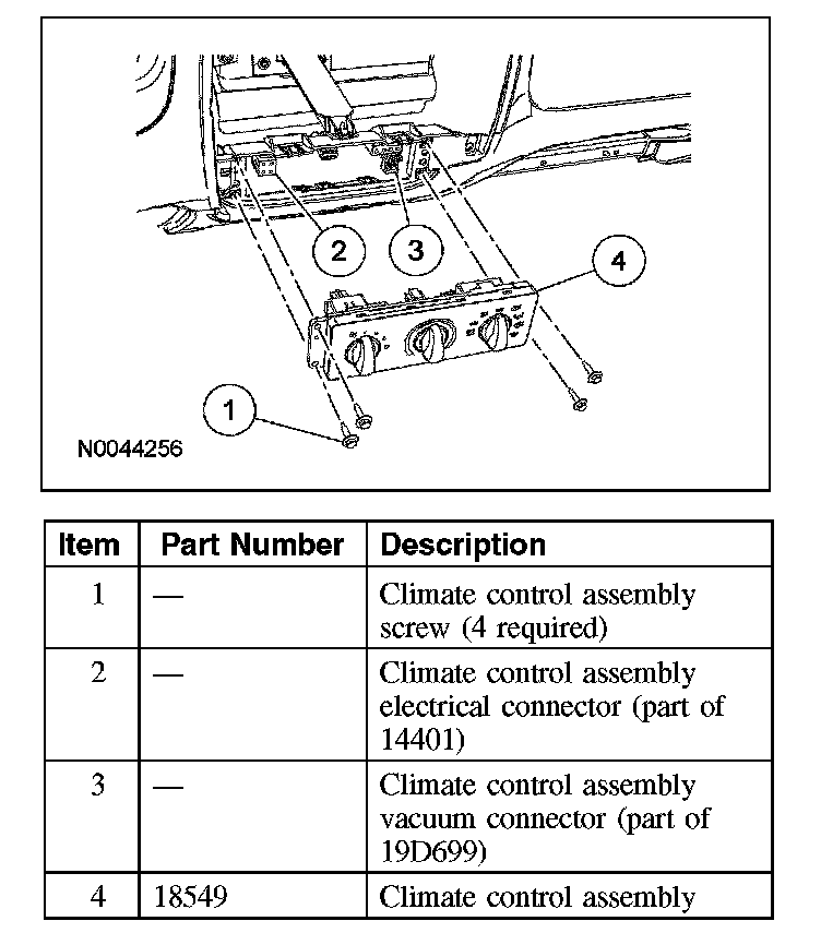 Home >> Ford >> 2008 >> Ranger 2WD V6-4.0L >> Repair and Diagnosis >> Heating and Air Conditioning >> Control Assembly >> Service and Repair >> Climate Control Assembly