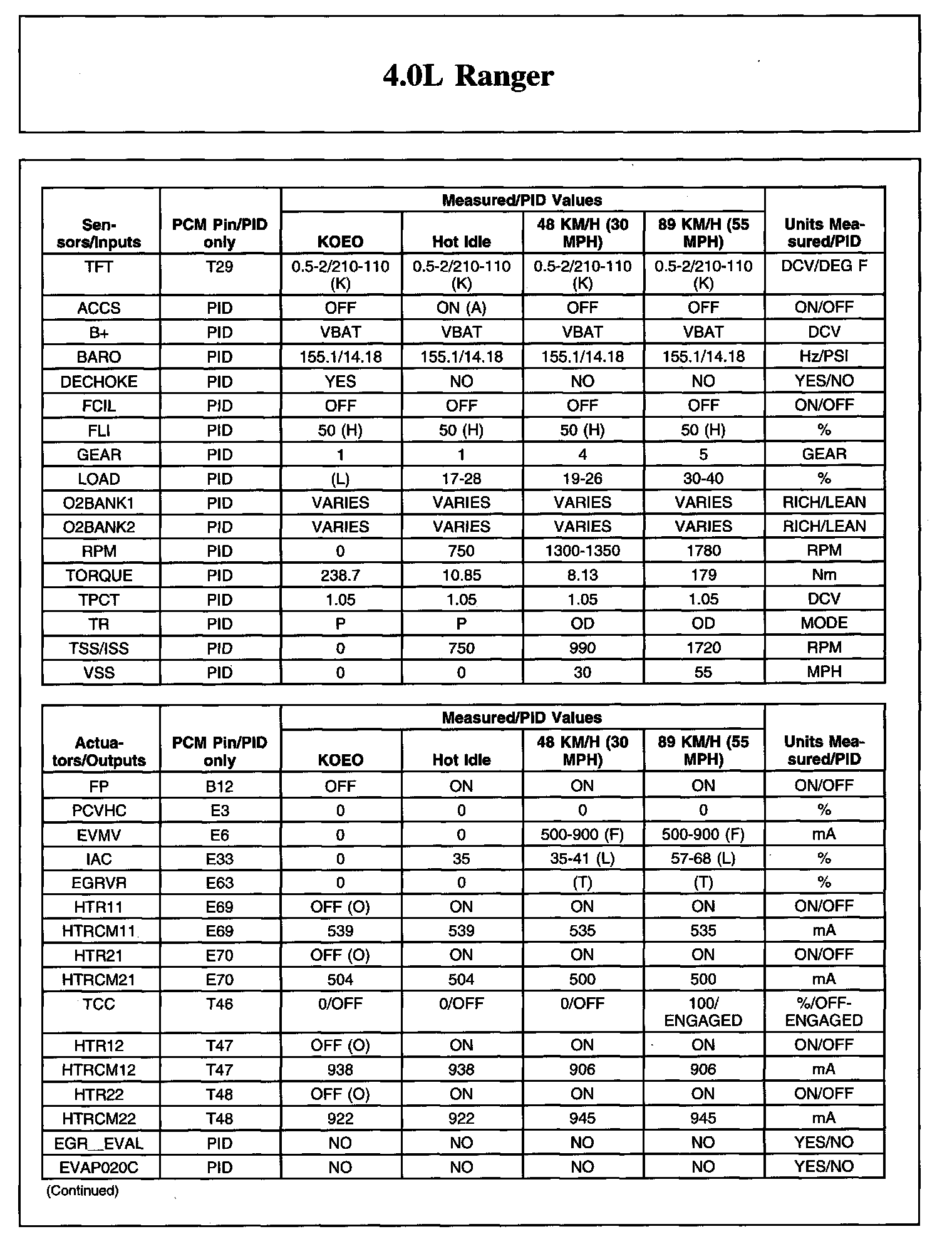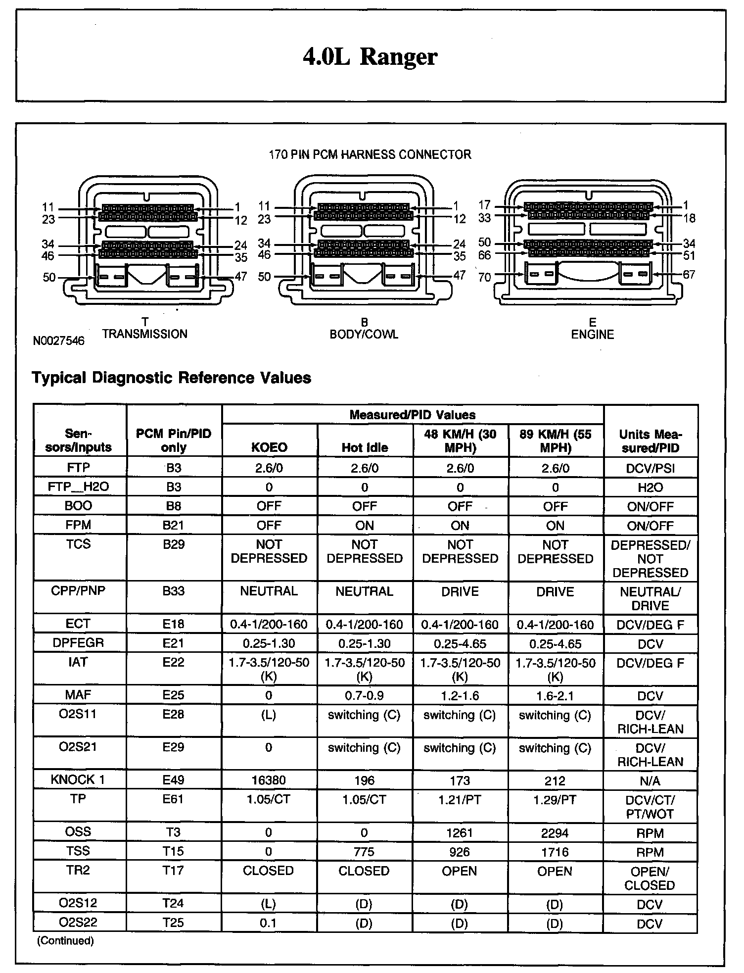 Home >> Ford >> 2008 >> Ranger 2WD V6-4.0L >> Repair and Diagnosis >> Powertrain Management >> Computers and Control Systems >> Testing and Inspection >> Scan Tool Testing and Procedures >> Typical Diagnostic Reference Values