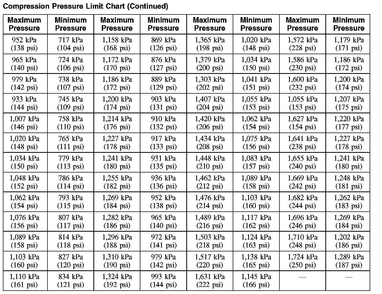 Compression Pressure Limit Chart (Part 2):