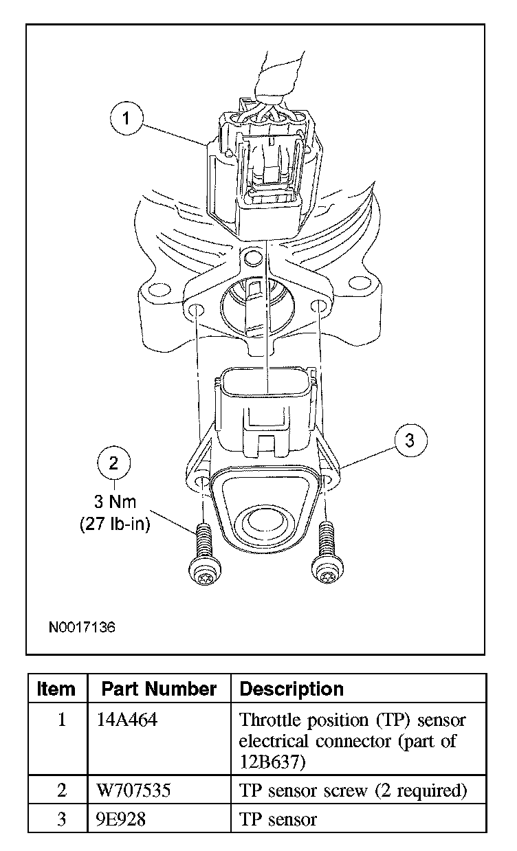 3. CAUTION: Do not use a high-speed driver to install the new screws or damage to the throttle position (TP) sensor may occur.