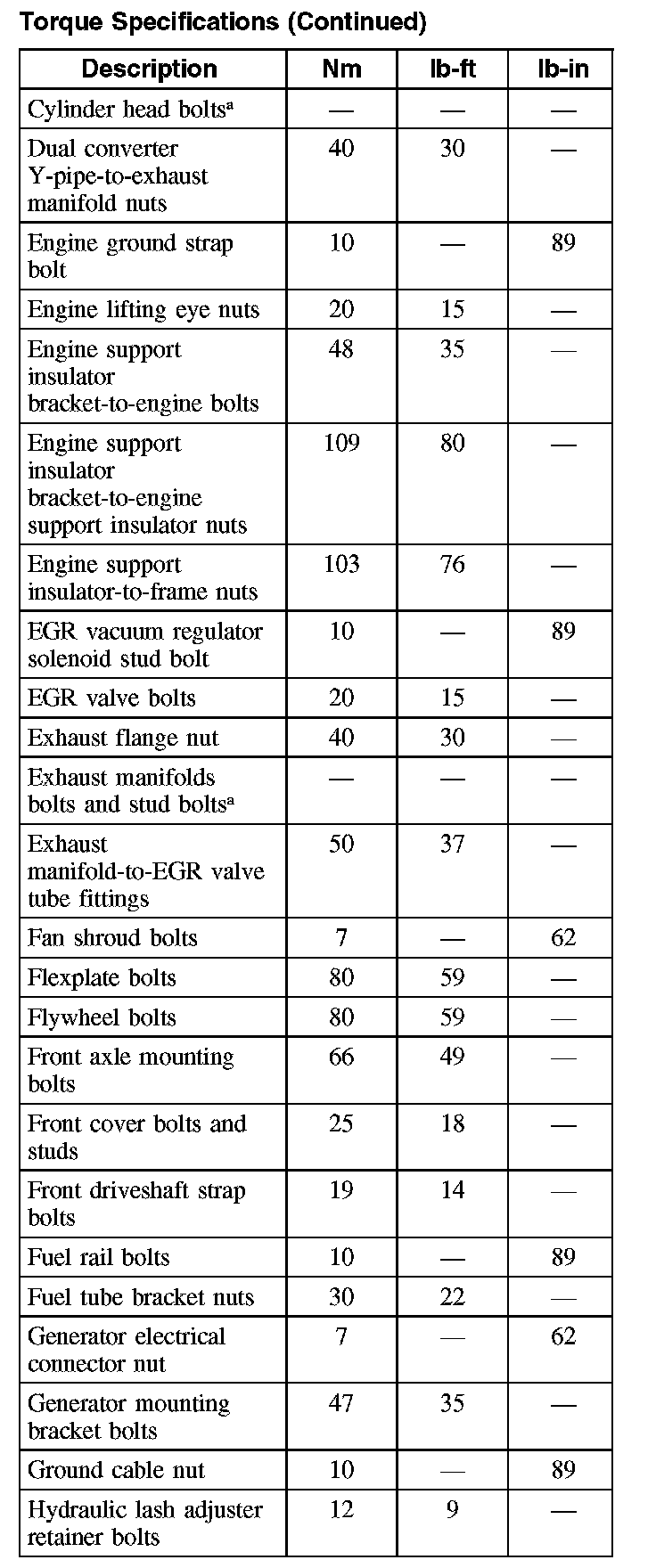Torque Specifications