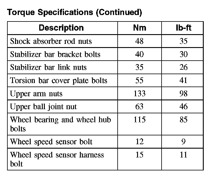 Torque Specifications